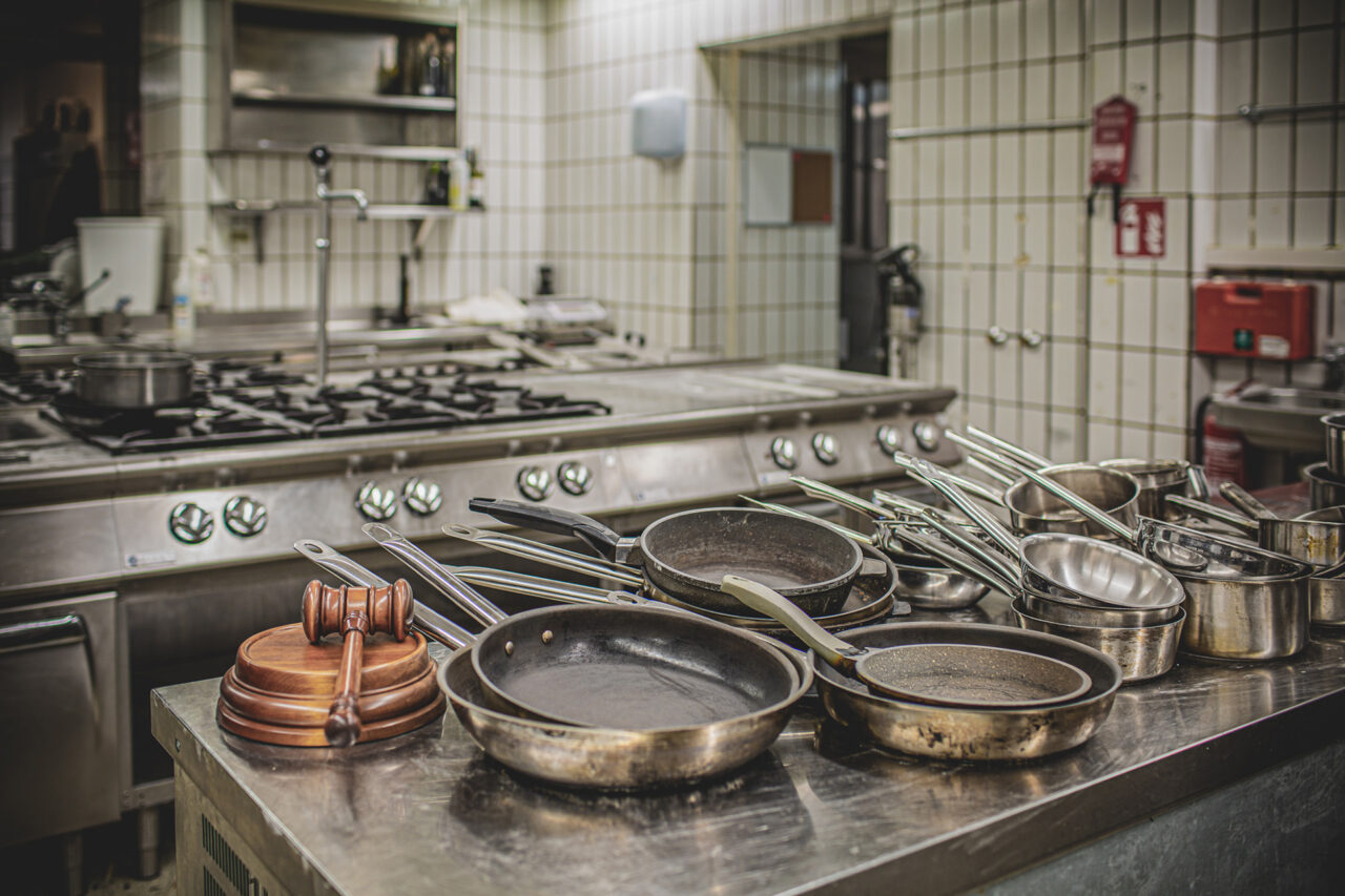 Auch die gesamte Ausstattung der Hotelküche wird versteigert, von Kühlschränken, Gastroherden und Niro-Arbeitstischen bis zu stapelweisen Tellern, Schalen, Schüsseln und Pfannen. Weinflaschen, Spirituosen sowie Utensilien aus der ehemaligen Bar „Europa“ sind ebenfalls dabei.
